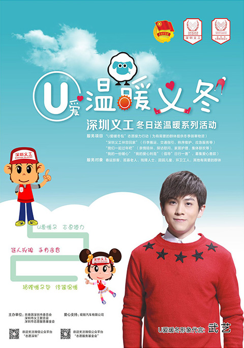 深圳市共青團為了推動志愿服務制度化、社區化、信息化,開展“U愛清涼義夏”、“U愛溫暖義冬”等系列志愿服務行動。國際青年鋼琴家李云迪擔任深圳義工形象大使,為深圳共青團公益助力,促進此次活動營造青春、創新、公益的城市氛圍。